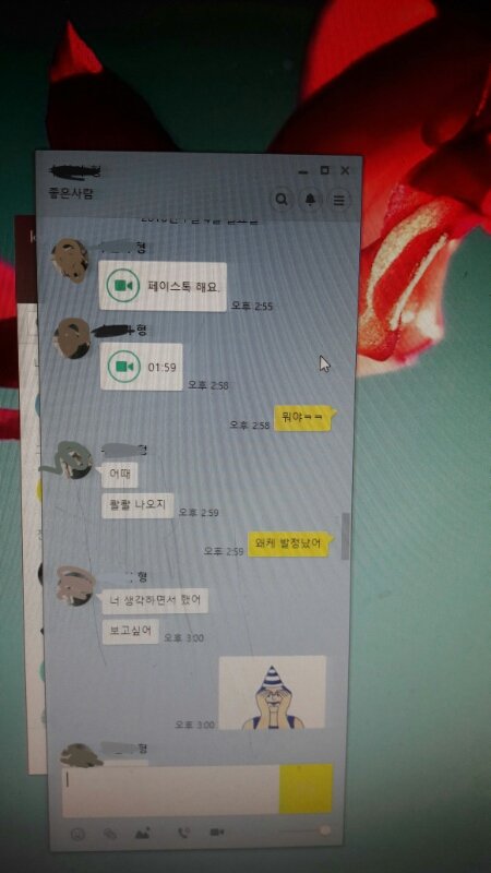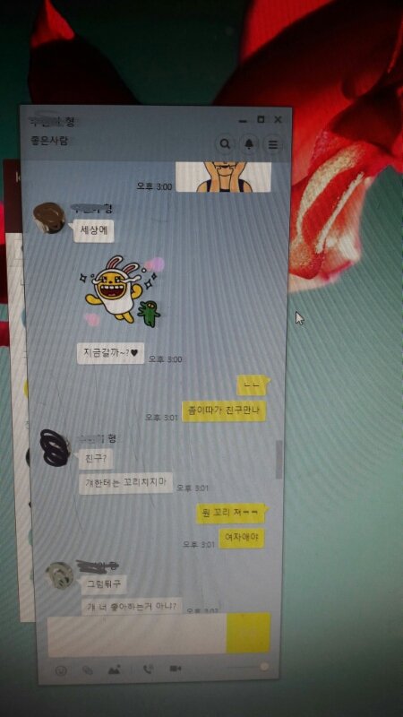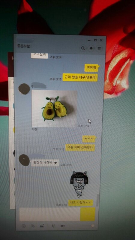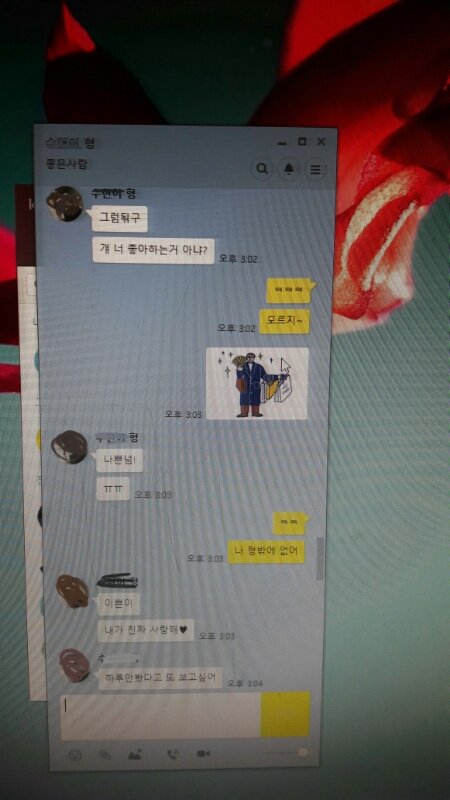 I played game on his computer but then I realized that it was his own computer, I was curious about what's in his computer so I logged out from the game, right at that time I saw a PC Version of his Kakaotalk. He always shows me everything but he never showed me his Kakaotalk, so I opened it using the same password he used to log into the game.