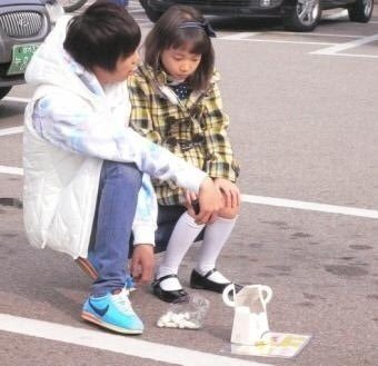 1. [+70][-1] I can only think of this picture whenever I see him.. The little girl told him that she hurt her own legs so he let her sit on his lap like that..