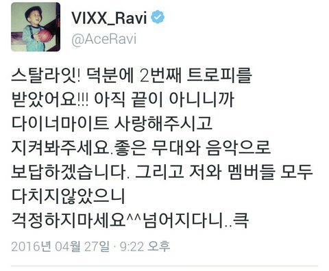 VIXX's Ravi wearing a bandages because he fell yesterday.