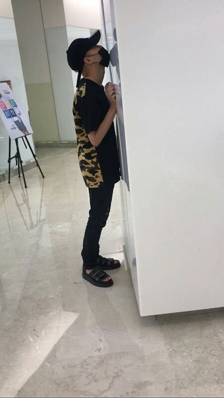Some fans recognized him and he felt very shy that's why he hid himself behind the pillar like thatㅋㅋㅋㅋ
