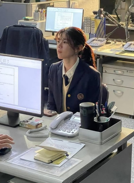 In the photos, Go Yoonjung is seen wearing a school uniform while attending the plice station. She made an appearance as a witness in the Disney+ 'Light Shop' as a witness to testify about the case.